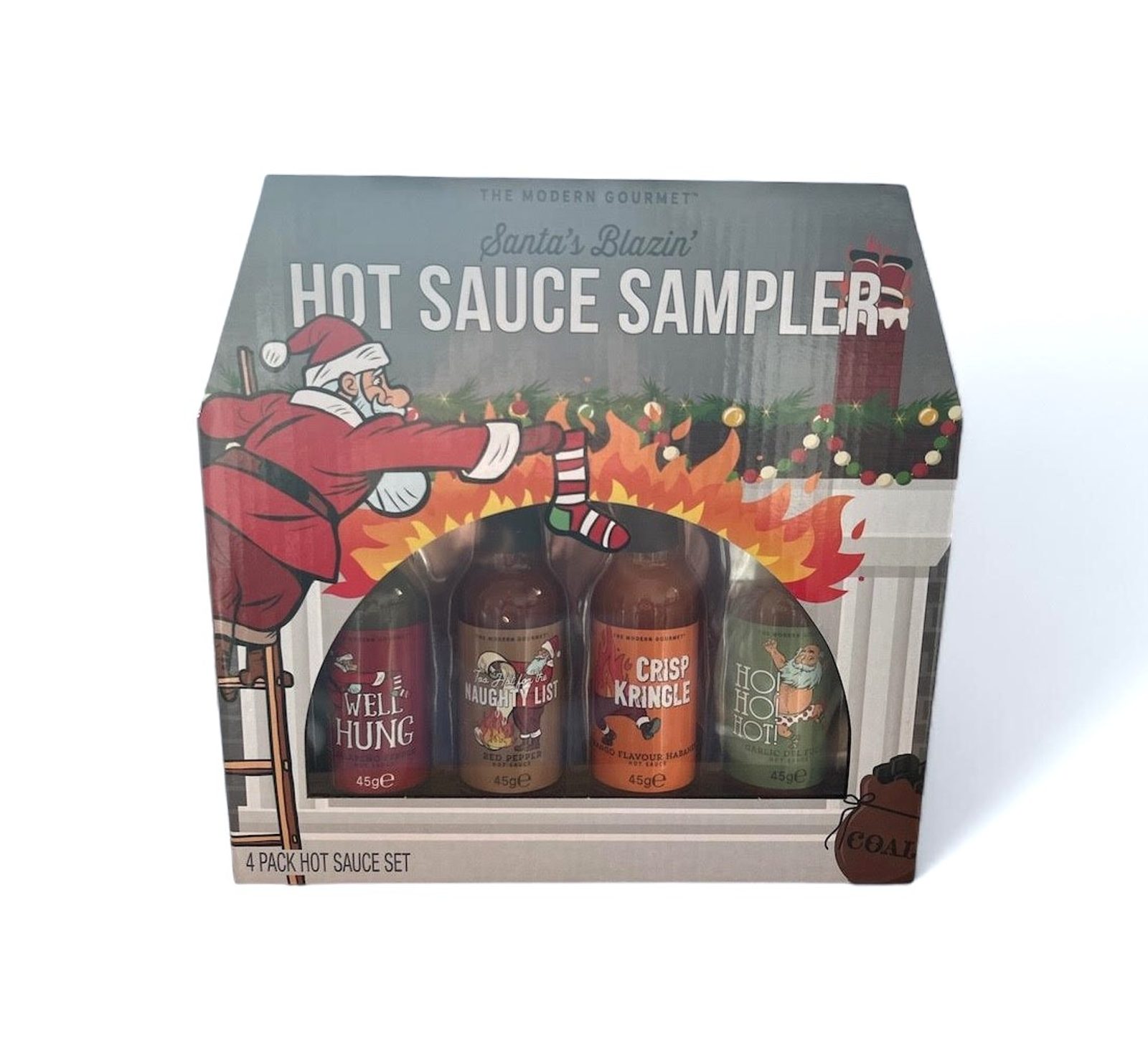 Garlic del Fuego: voda, červené chilli (21%), soľ, maltodextrín, cesnakový prášok (2%), regulátory kyslosti (E260, E330), zahusťovadlo (E415), chilli, konzervant (E202).