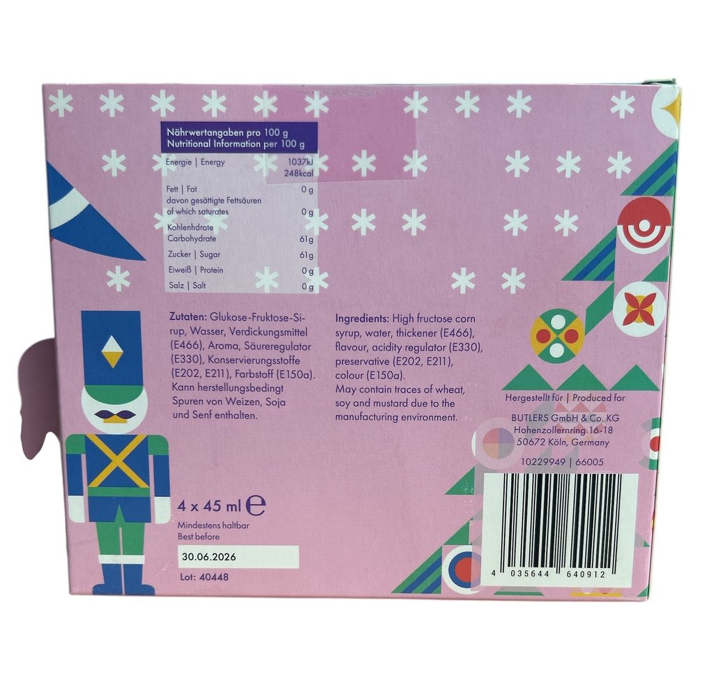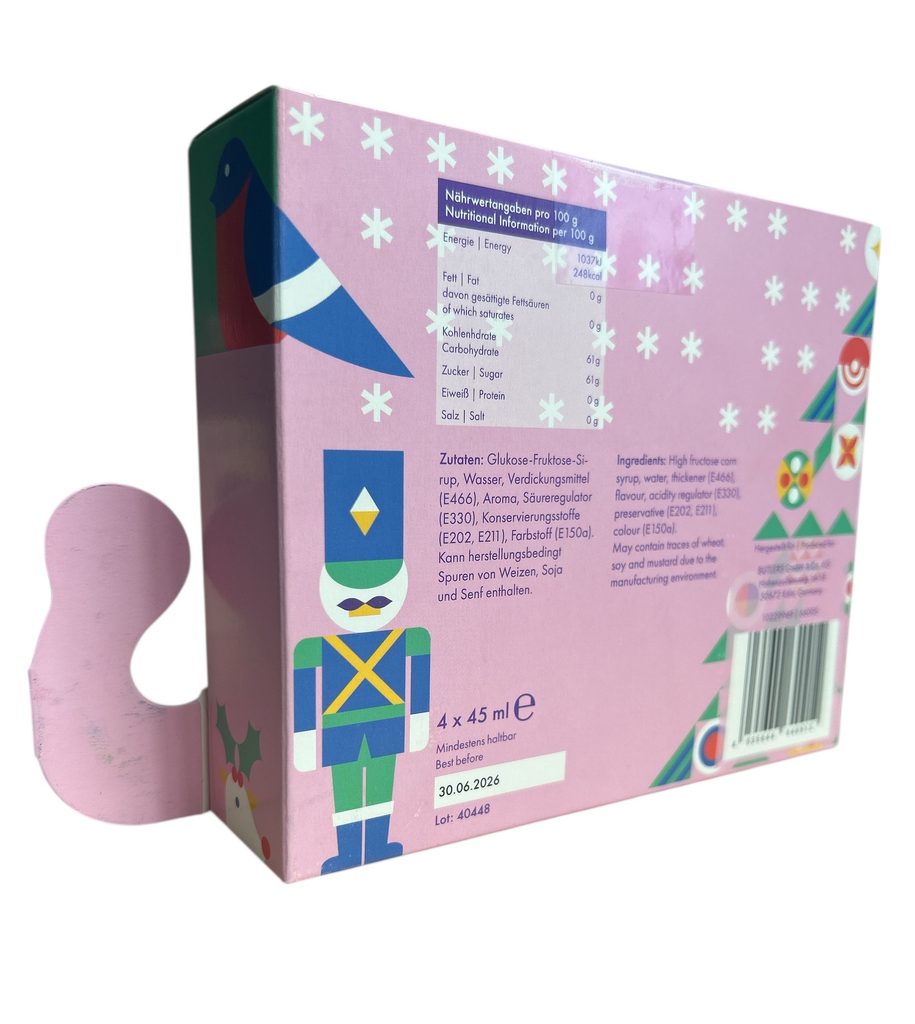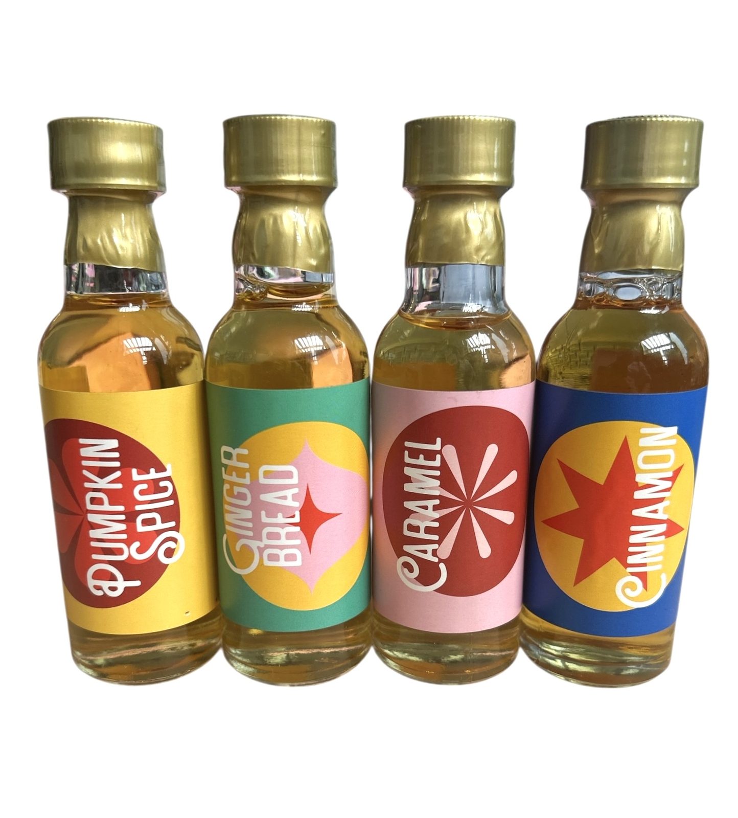 Štyri špeciálne sirupy inšpirované Vianocami vo farebnom sviatočnom balení: perníkový, karamelový, škoricový a tekvicový. Perfektný doplnok do kávy, čaju, dezertov alebo kreatívnych nápojov. Stačí jedna kvapka a máte sviatočnú náladu.