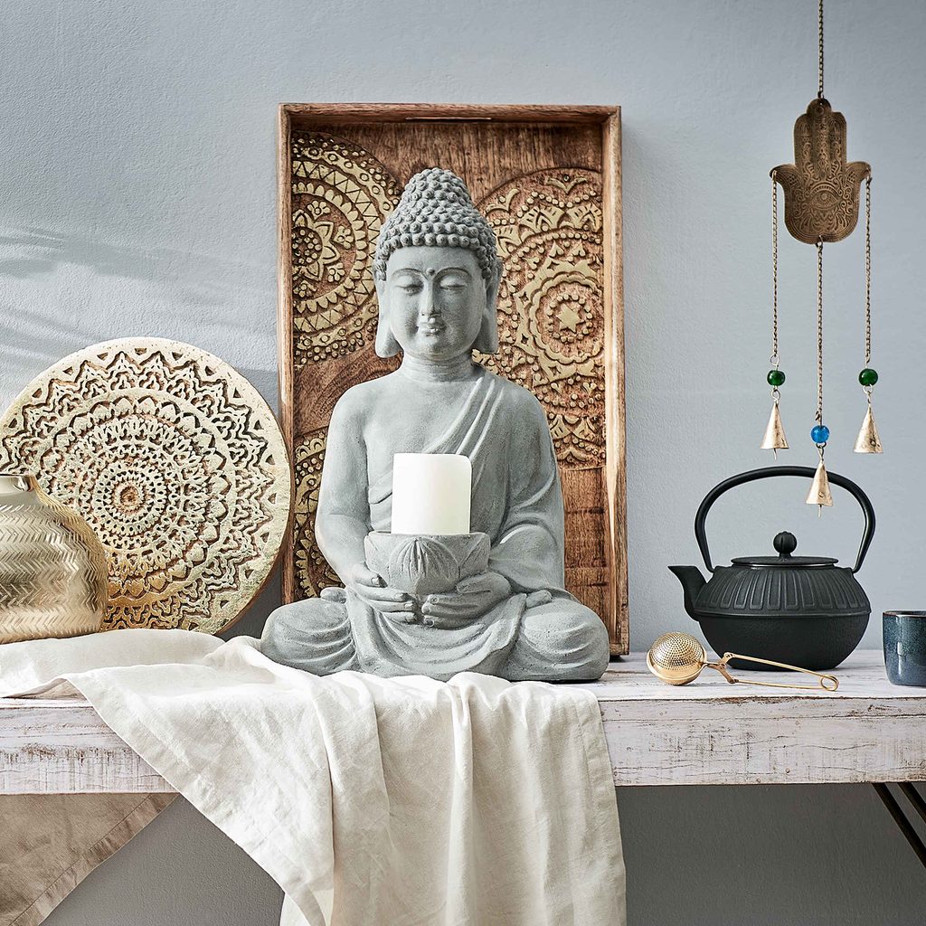 Kedykoľvek zapálite sviečku, poskytne Vám socha sediaceho Buddhy vo vzhľade kameniny svojej osvietenie. Vyberte pre svojho Buddhu zvláštne miesto, aby ste sa na neho mohli pozerať bez rozptyľovania. K dostaniu v ďalších variantách.