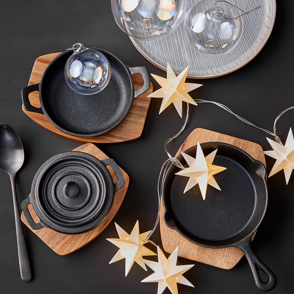 Opatrne, toto je horúce! So servírovacou panvicou HOT IRON naservírujete svoje pokrmy ešte horúce a bez zbytočných prieťahov. Ako by ste Vaše steaky, syrové cestoviny či pečené zemiaky práve dali dole zo sporáka a položili na prestretý stôl. V čiernej panvici z liatiny vydržia Vaše jedlá dlhšie teplé a vďaka drevenému podnosu z agátového dreva prispôsobenému dnu panvy bude Váš stôl bezpečne chránený pred horúčavou. Bon Apetit!