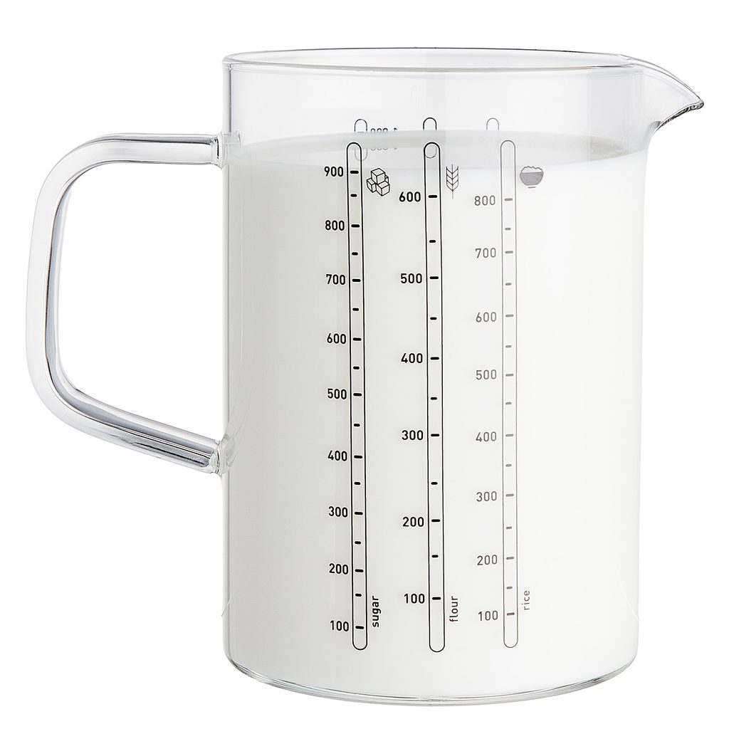 Sklenené odmerky RECIPE vám pomôžu pri akejkoľvek kuchynskej práci: vďaka rôznym stupniciam na bočnej strane môžete ľahko odmerať správne množstvo prísad a zmiešať ich.