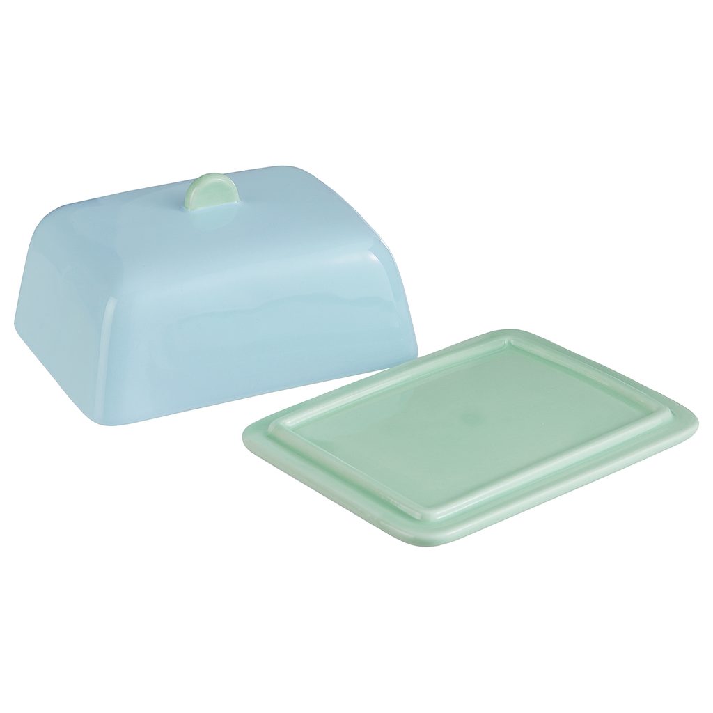 Spríjemnite si raňajky či desiatu s dvojfarebnou miskou na maslo BUTTER. Pastelové odtiene a zaoblené tvary prepožičiavajú tomuto kúsku pôvabný retro charakter, ktorý je ideálny na uchovávanie i servírovanie masla.
