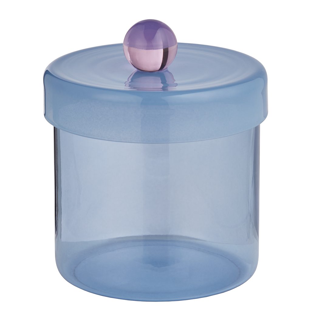 Retro tvar a svieže farby: nádoba GLOBE nič neskrýva a hrdo vystavuje svoj obsah cez farebné sklo. K dispozícii aj v inom farebnom prevedení.