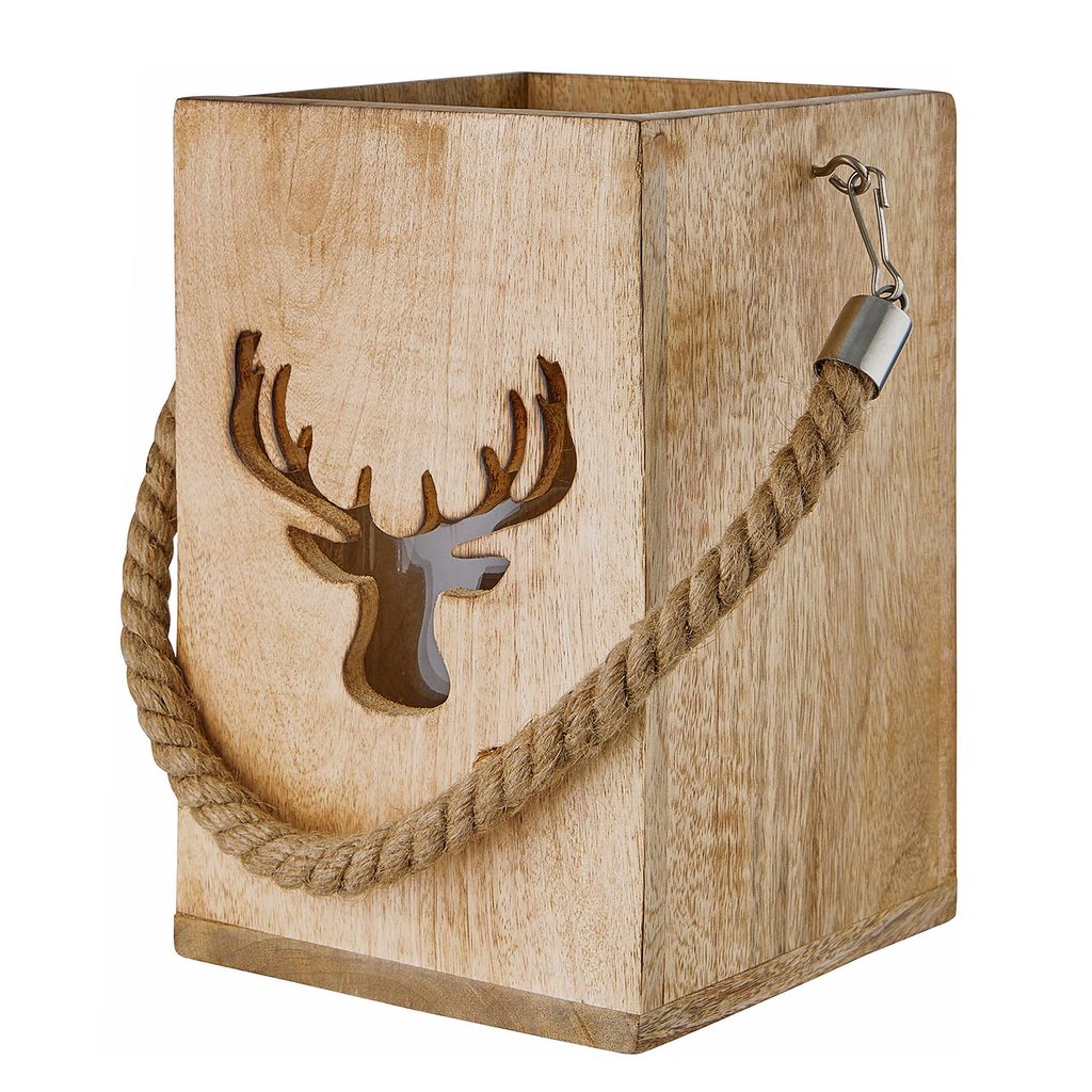 Drevená lucerna jeleň 24 cm