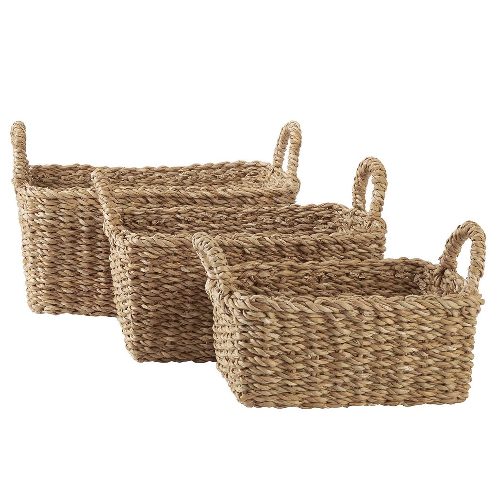 S našim hranatým úložným košom ERLA s držiakmi budete mať tému upratovanie a skladovanie a zároveň i tému dekorácia úplne pod kontrolou. Hrubo pletený prírodný materiál so svojím autentickým šarmom nemusíte nijako skrývať a na kuchynskom stole, v zátiší aj na príborníku sa bude krásne vynímať. K dostaniu v rôznych veľkostiach.