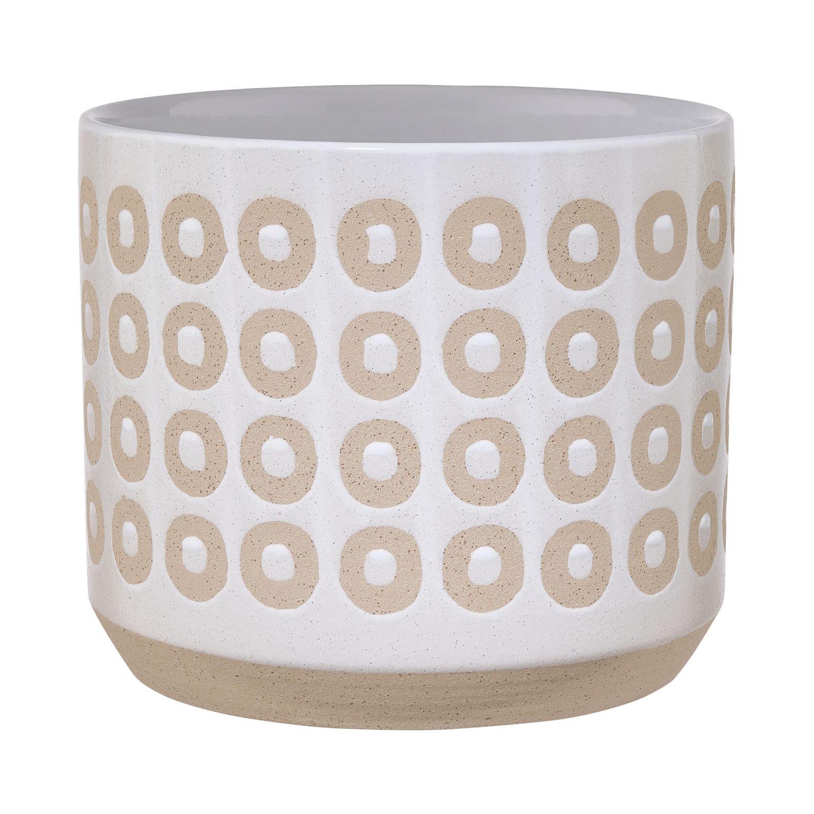 Jemný design tohto kvetináča je len o kruhu.: Kvetináč z bielej kameniny je zdobený pekným vzorom a upúta na každom parapete, poličke alebo stolčeku. S priemerom 25,5 cm a výškou približne 22 cm je vhodný aj na väčšie bylinky, kaktusy, sukulenty alebo pre akúkoľvek inú kvetinu, ktorú si chcete zasadiť.