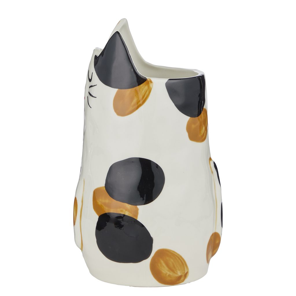 Teraz bude dekorovanie naozaj zvieracie! Keramická váza PABLO v tvare mačky vnesie do Vášho domova hravý „Roar efekt“ a skvele sa kombinuje so svietnikmi či ďalšími doplnkami s motívmi zvierat. Prepracovaná ručne maľovaná váza však vynikne aj ako samostatný dekoratívny kúsok.