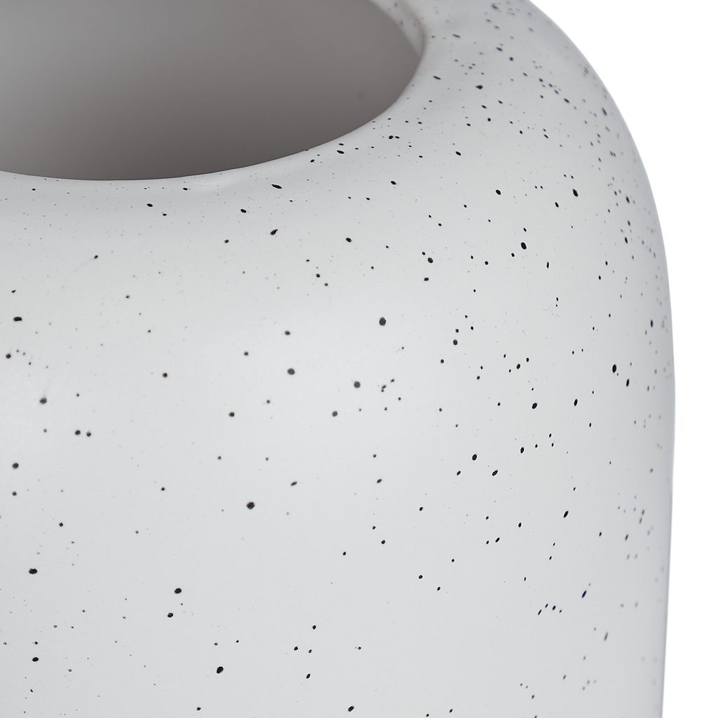 Mnoho drobných bodiek presne pristálo na bielom keramickom ráme SPECKLE. Škvrnitý vzhľad je nielen módny, ale zároveň oživuje čistý, minimalistický tvar vázy. Hodí sa do prírodných a škandinávskych interiérov.