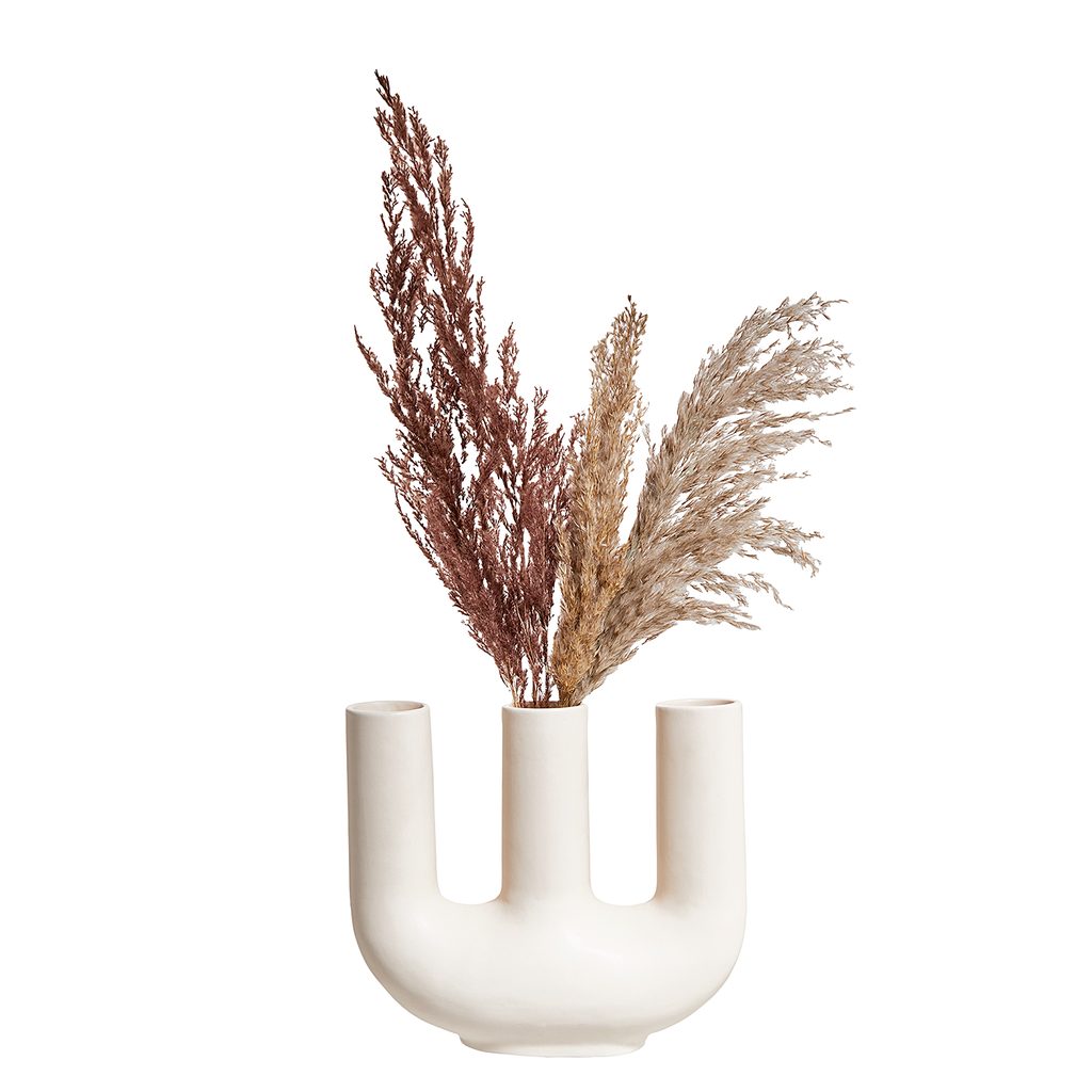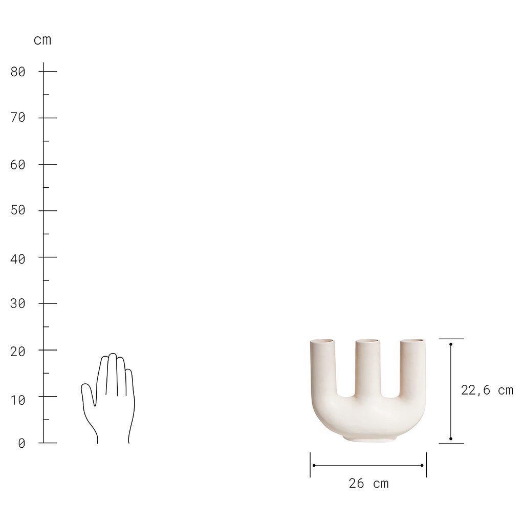 Pretože všetky dobré veci prichádzajú po troch, má naša TRIPLE váza z dolomitu v béžovej farbe tri otvory pre vetvičky, kvety alebo sušené kvety. Môžete použiť len jeden alebo dva všetko závisí len od vašej kreativity a vkusu. V každom prípade môžete s modernou trojvázou zdobiť pestro a individuálne napríklad na prestretom stole.