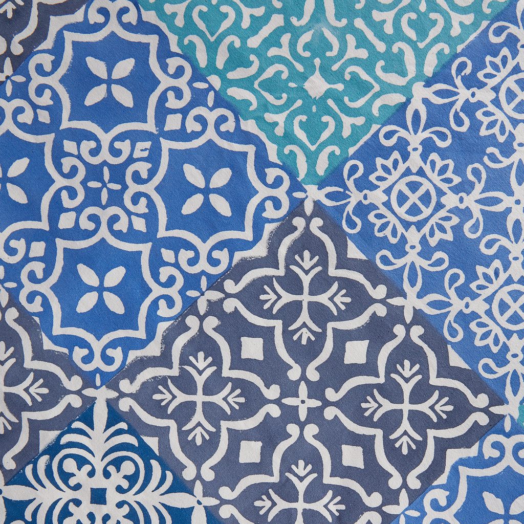 V textílii AMALFI sa nádherne odrážajú tradičné vzory južného Talianska a vplyv maurskej kultúry. Kolekcia je vyrobená z čistej bavlny vo sviežej letnej modrej farbe, a je ideálna pre každodenné použitie aj pre útulné prestieranie na balkóne či terase.
