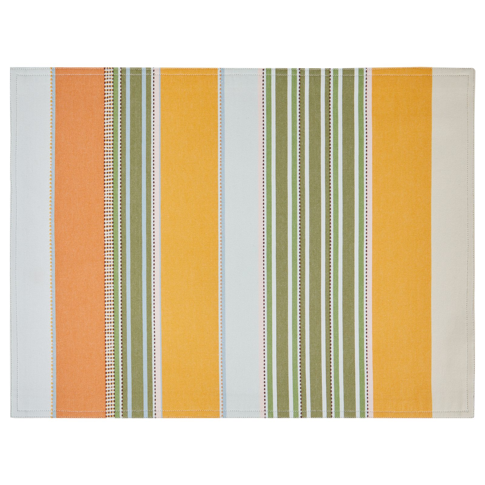 Textilné prestieranie SUPPER CLUB sa vyznačuje pruhmi rôznej šírky a sviežimi letnými farbami, ideálnymi na stolovanie. Prestieranie vnesie do Vášho domova slnečný a príjemný nádych. Je vyrobené z čistej bavlny, ľahko sa udržuje a je vhodné na každodenné použitie. Veselé a univerzálne, skvele poslúži na rôzne príležitosti alebo ako dekoratívny doplnok Vášho interiéru.
