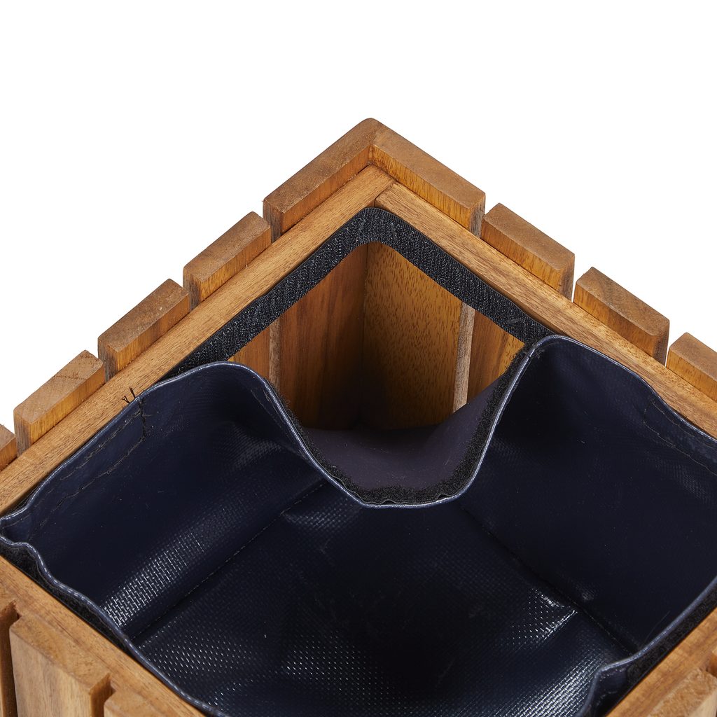 Sada 3 kvetináčov NEW GARDENING je vyrobená z prírodného akáciového dreva na vonkajšej strane az potiahnutého plátna vo vnútri. Obsahuje praktickú skladaciu vložku, ktorá je ideálna pre Vaše zelené aj kvitnúce rastliny. Vďaka modernému dizajnu sa štvorcové kvetináče skvele hodia do interiéru aj na balkón či terasu, kde dodajú Vášmu priestoru šmrnc vďaka bohatej zeleni.