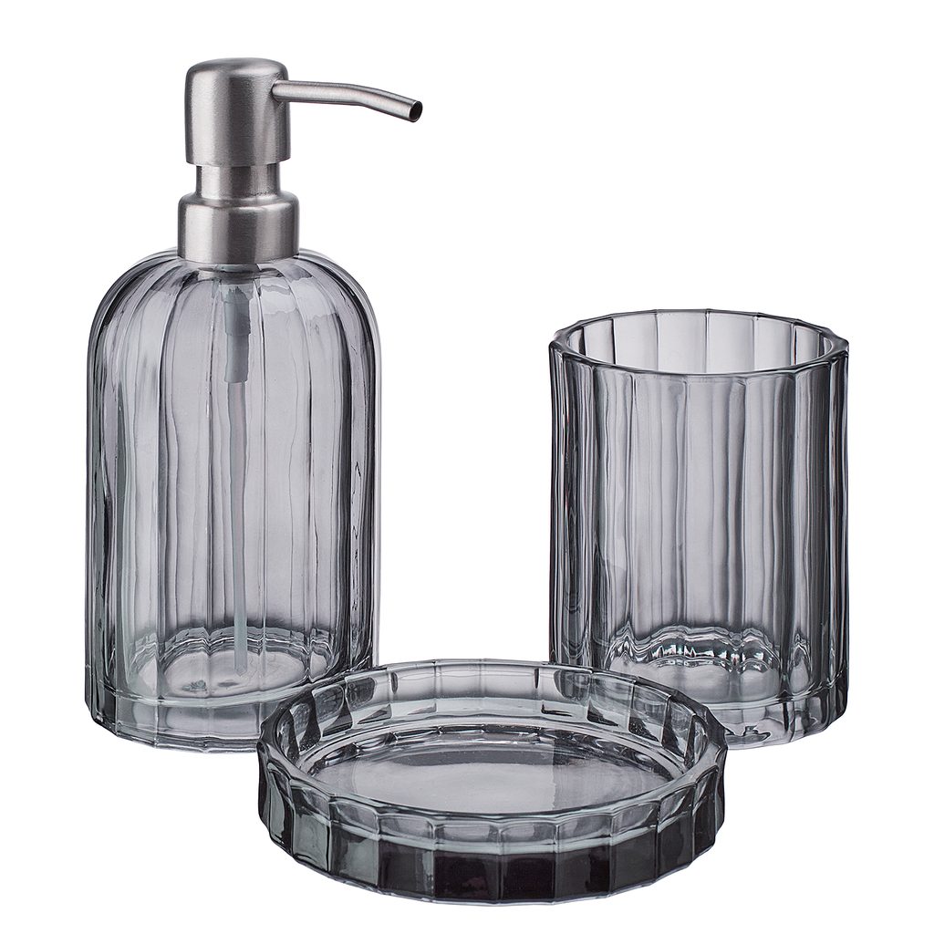Držiak na zubné kefky TOCIA je vyrobený z textúrovaného antracitovo sivého skla a kombinuje moderný vzhľad so štýlom 20. rokov minulého storočia - sofistikovaná kombinácia pre vašu vkusne navrhnutú kúpeľňu alebo kúpeľňu pre hostí. Ponúkame aj zodpovedajúci dávkovač tekutého mydla a misku na mydlo.