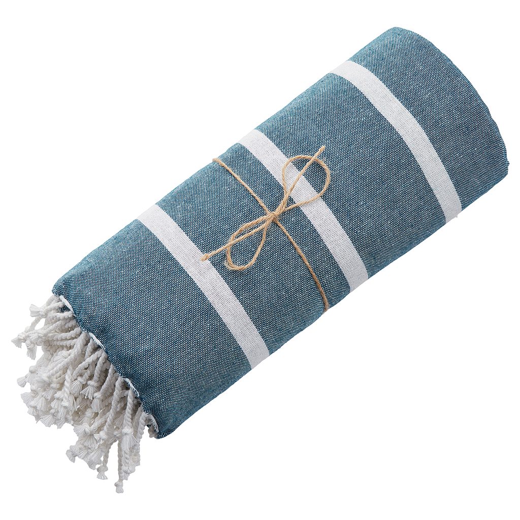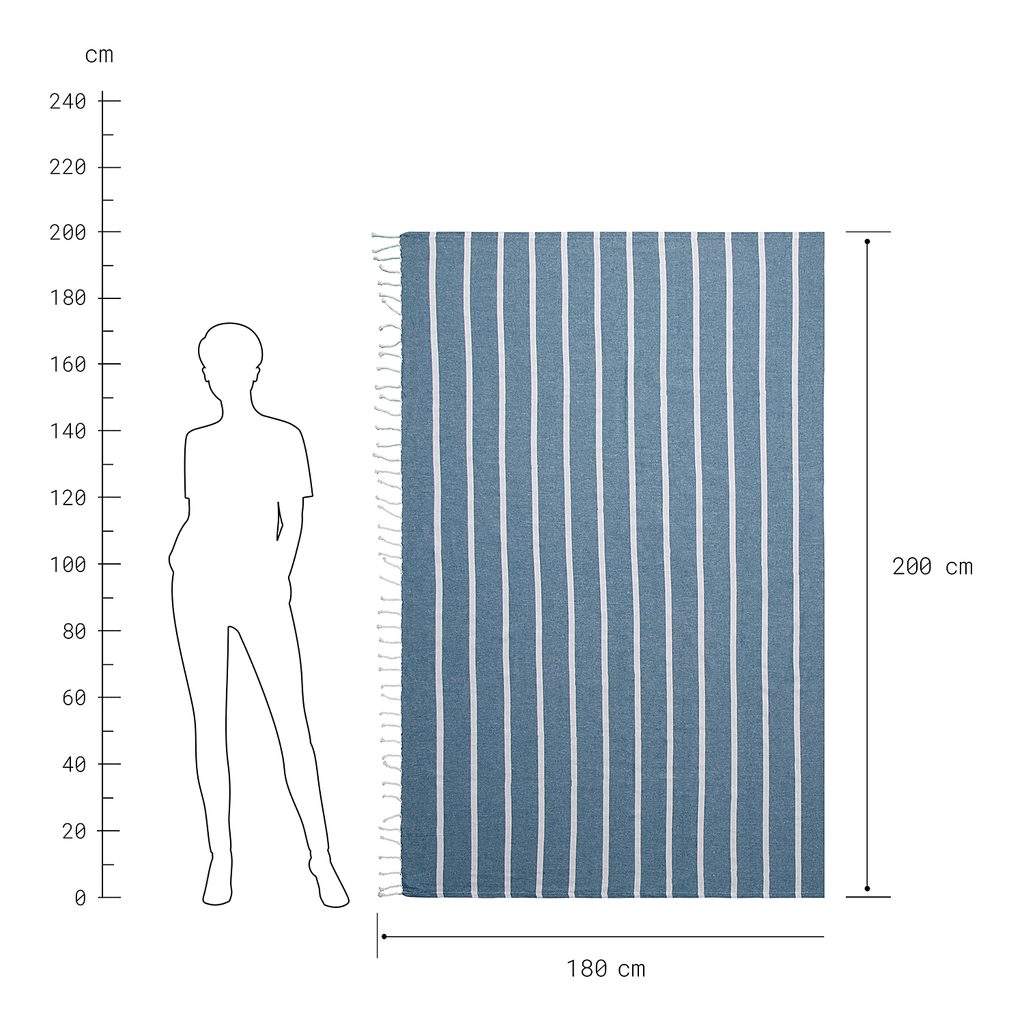 Či už idete na pláž alebo na piknik, určite nezabudnite so sebou do tašky zabaliť praktickú a ľahučkú bavlnenú osušku SURFSIDE. Môžete ju využiť aj ako príjemnú deku alebo prehoz do Vášho bytu. K dostaniu v ďalších farebných variantoch.
