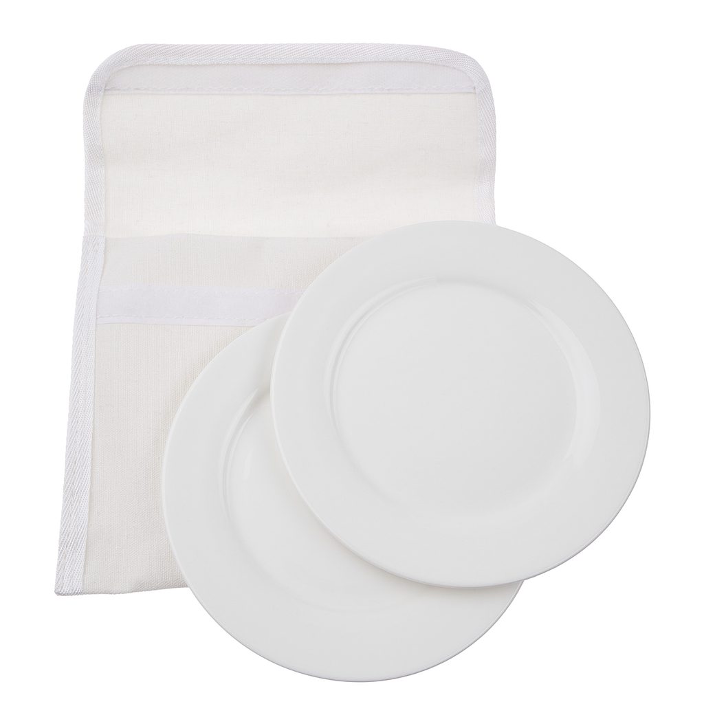 Piknikový kôš obsahuje aj 2 sady príborov, 2 poháre a 2 porcelánové taniere.
