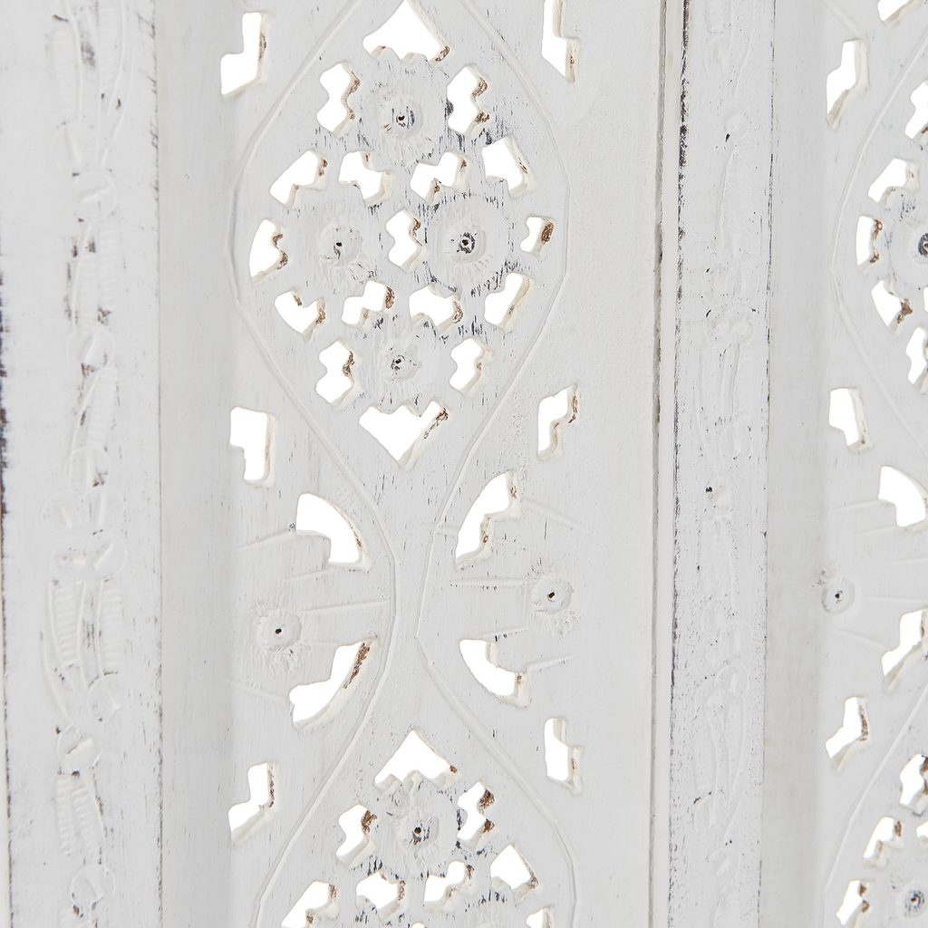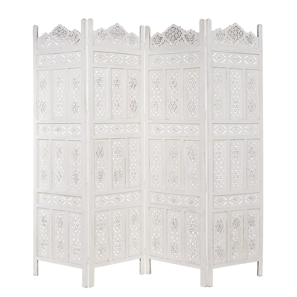 Akoby pochádzal zo španielskej Fincy, talianskej Villy alebo portugalskej Posady – biely paraván Estella pôsobí okúzľujúcou nostalgiou a jeho spracovanie je skutočne náročné – ručne zhotovený i maľovaný. Mnohostranne použiteľný – ako deliaci prvok miestnosti, zástena proti zvedavým pohľadom alebo ako dekorácia. Štýl „Vintage-Look“.