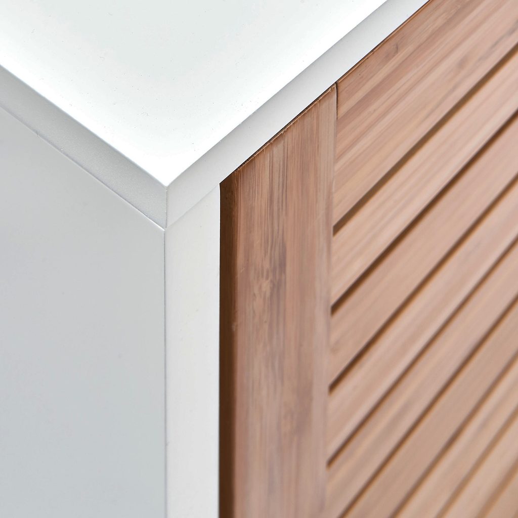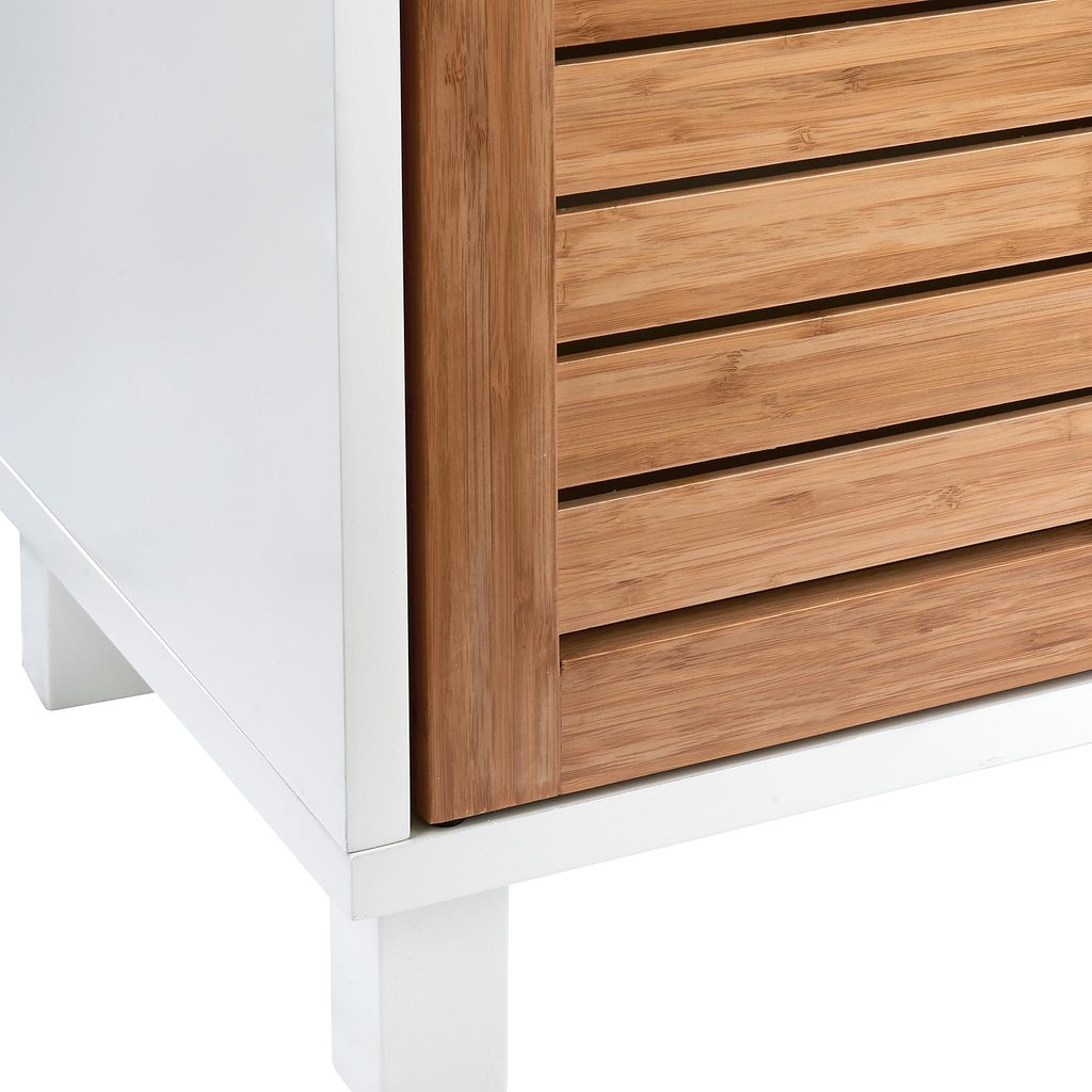 Jemná biela v kombinácii s prírodným bambusom. Táto všestranná skrinka pod umývadlo WHITE SANDS dokonale premení každý byt a zároveň splní všetky vaše očakávania. Séria nábytku WHITE SANDS pre vás má všetko, čo potrebujete, aby ste sa cítili ako doma. Každý kus sa osvedčí svojou praktickosťou a zároveň podčiarkne váš osobitý štýl. Perfektný spoločník na dlhé a šťastné spolužitie v každej možnej kombinácii.