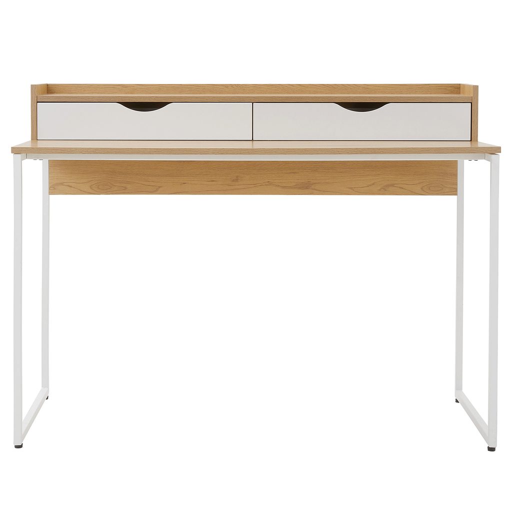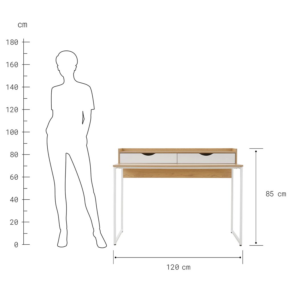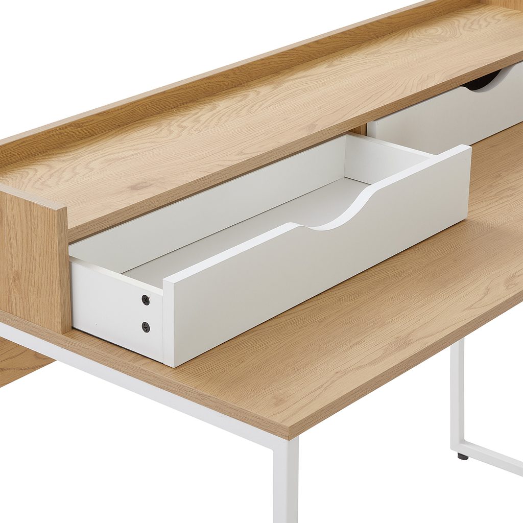 Vďaka robustnej konštrukcii je stôl stabilný a odolný, no zároveň svojím dizajnom pôsobí ľahko. Praktické úložné priestory v podobe otvorenej police a dvoch zásuviek Vám pomôžu udržať pracovnú plochu vždy upratanú a mať všetko po ruke.