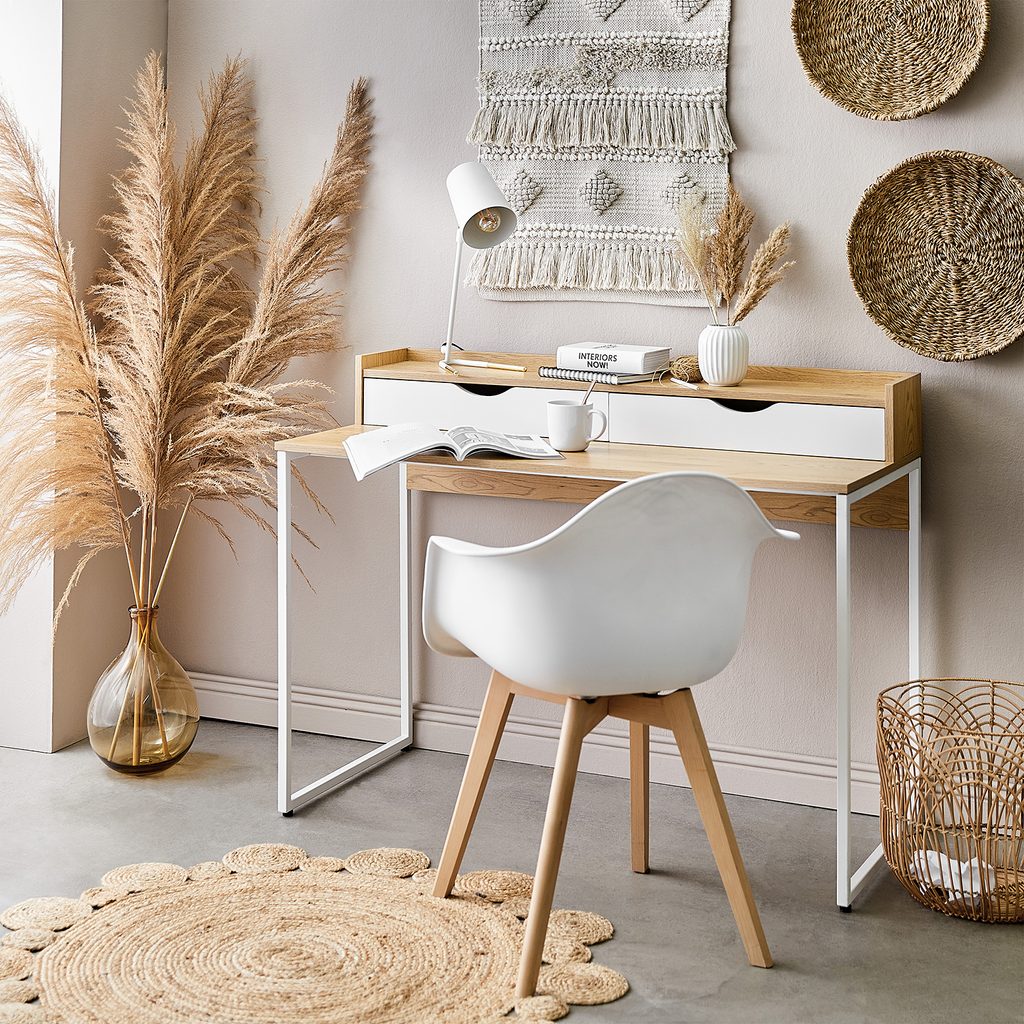 Stôl MODERNIST je ideálnou voľbou pre tých, ktorí hľadajú elegantnú a vzdušnú alternatívu k objemným písacím stolom. Kombinácia bielej farby a prírodného dreva dodá Vášmu interiéru moderný a svieži vzhľad, bez toho aby miestnosť pôsobila ako kancelária.