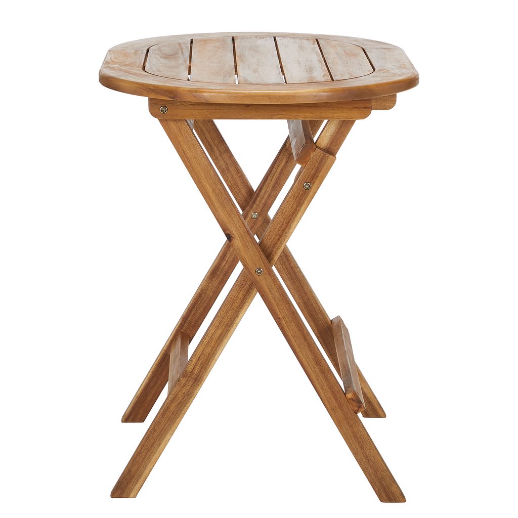 S oválnym skladacím záhradným stolíkom BOHO GARDEN si na balkóne alebo terase ľahko vytvoríte vlastnú malú Ibizu. Tento skladací stôl so zaoblenými hranami je vyrobený z akáciového dreva, ktoré mu dodáva prírodný a hrejivý vzhľad. Kompaktný drevený stôl sa ľahko skladá pre pohodlnú prepravu a priestorovo úsporné skladovanie - rovnako rýchlo ho možno zostaviť, pokiaľ si chcete napríklad užiť relaxačnú prestávku, alebo naň umiestniť sviečky, lucerny či ďalšie dekorácie.
