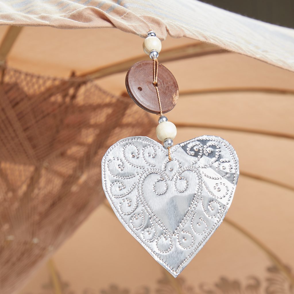 Materiál: mangové drevo, bavlnená tkanina, ručne vyrábané hliníkové dekorácie