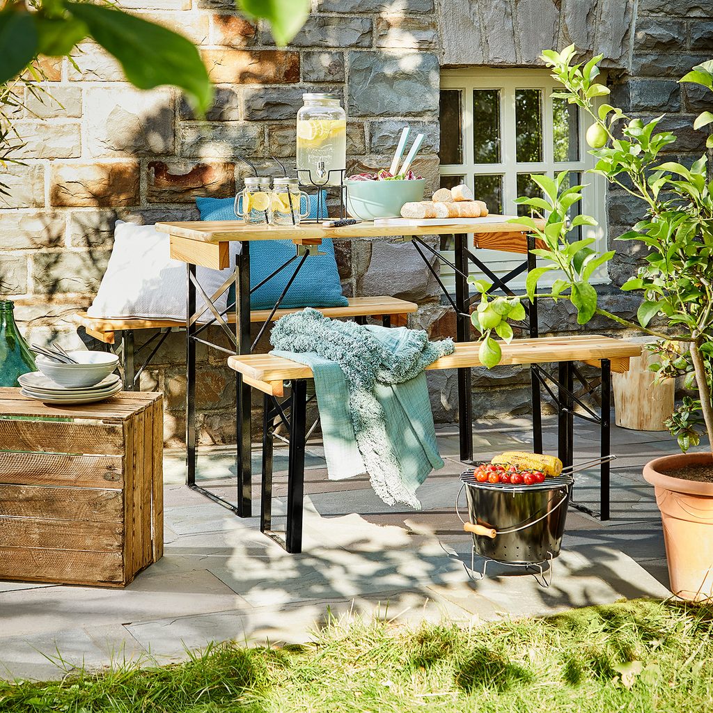 S kompaktným setom na vonkajšie sedenie (pre 4 osoby), nazývané aj ako "pivný set" GOOD COMPANY, obsahujúcim skladací stolík a dve skladacie lavičky, budete na balkóne, terase, na záhrade i pri kempovaní v tej najlepšej spoločnosti. Pri grile, na oslave alebo pikniku, na výlete či jedle pod holým nebom nielen že rýchlo všetky diely rozložíte, ale potom aj v okamžiku zložíte do veľkosti, ktorá ušetrí veľa miesta. Teda do doby, než zase príde chvíľa na posedenie.
