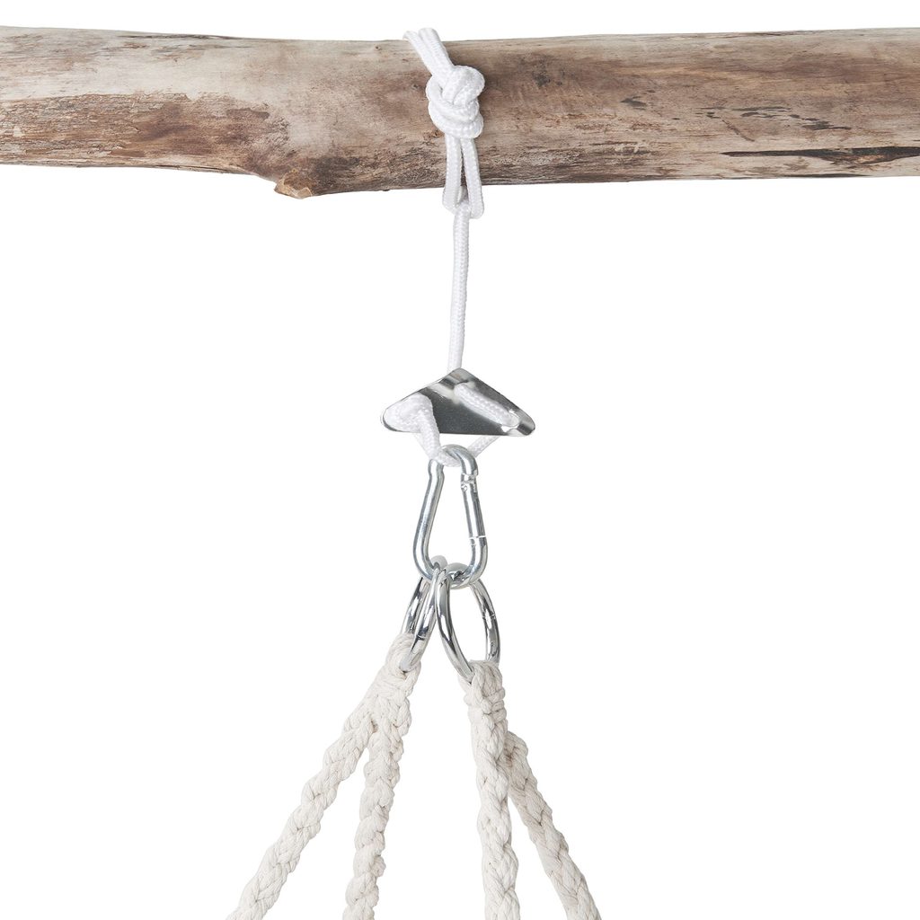 S našim závesným systémom BABOON zavesíte svoje hojdacie kreslo rýchlo a bezpečne na každý pevný strom. Stabilný polyesterový pás so silným karabínovým hákom z robustného kovu sa postará o Váš povznášajúci odpočinok. Ak si prajete zavesiť svoju hojdaciu sieť, budete tento systém potrebovať dvakrát.