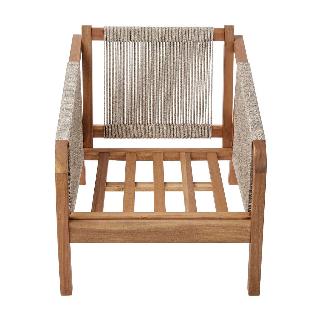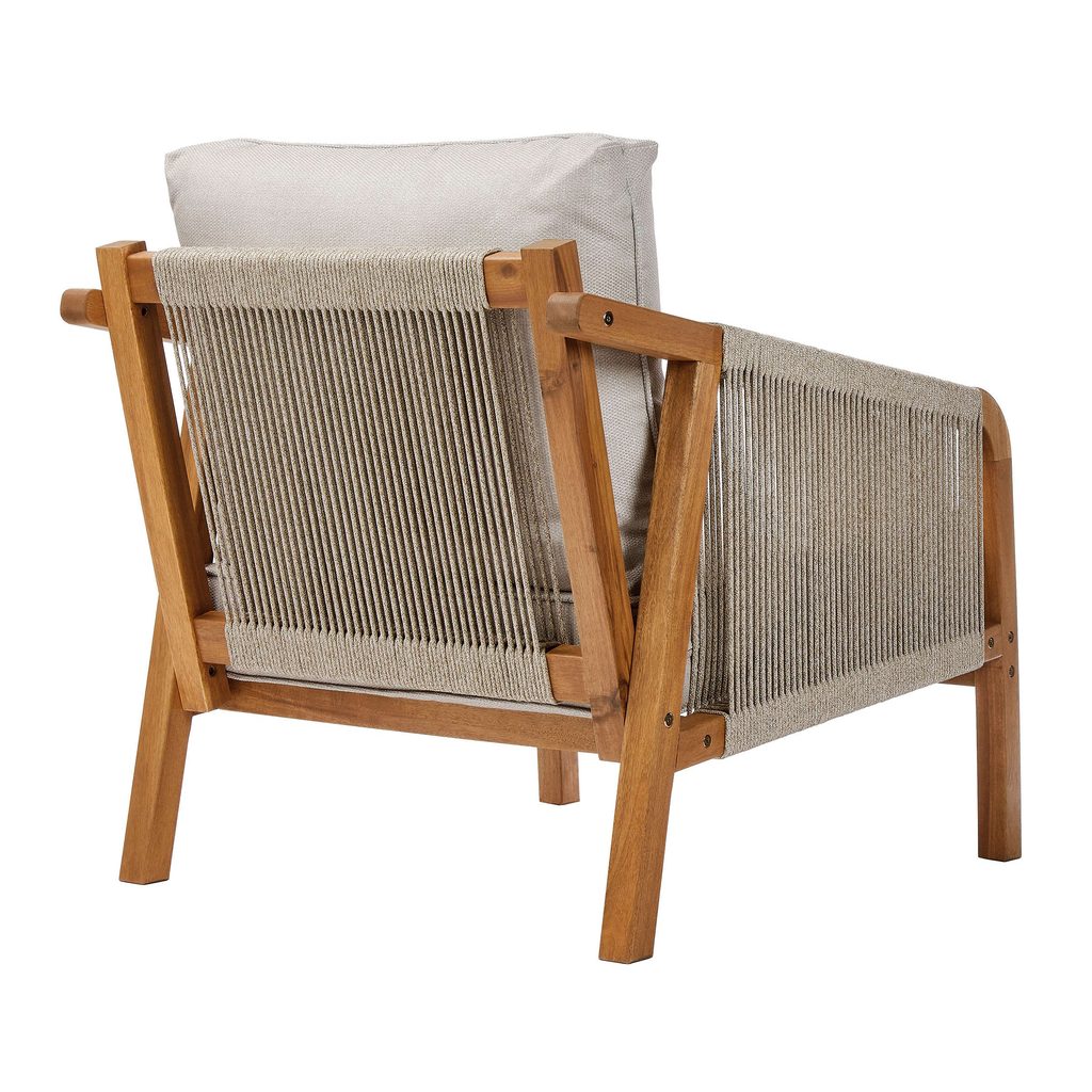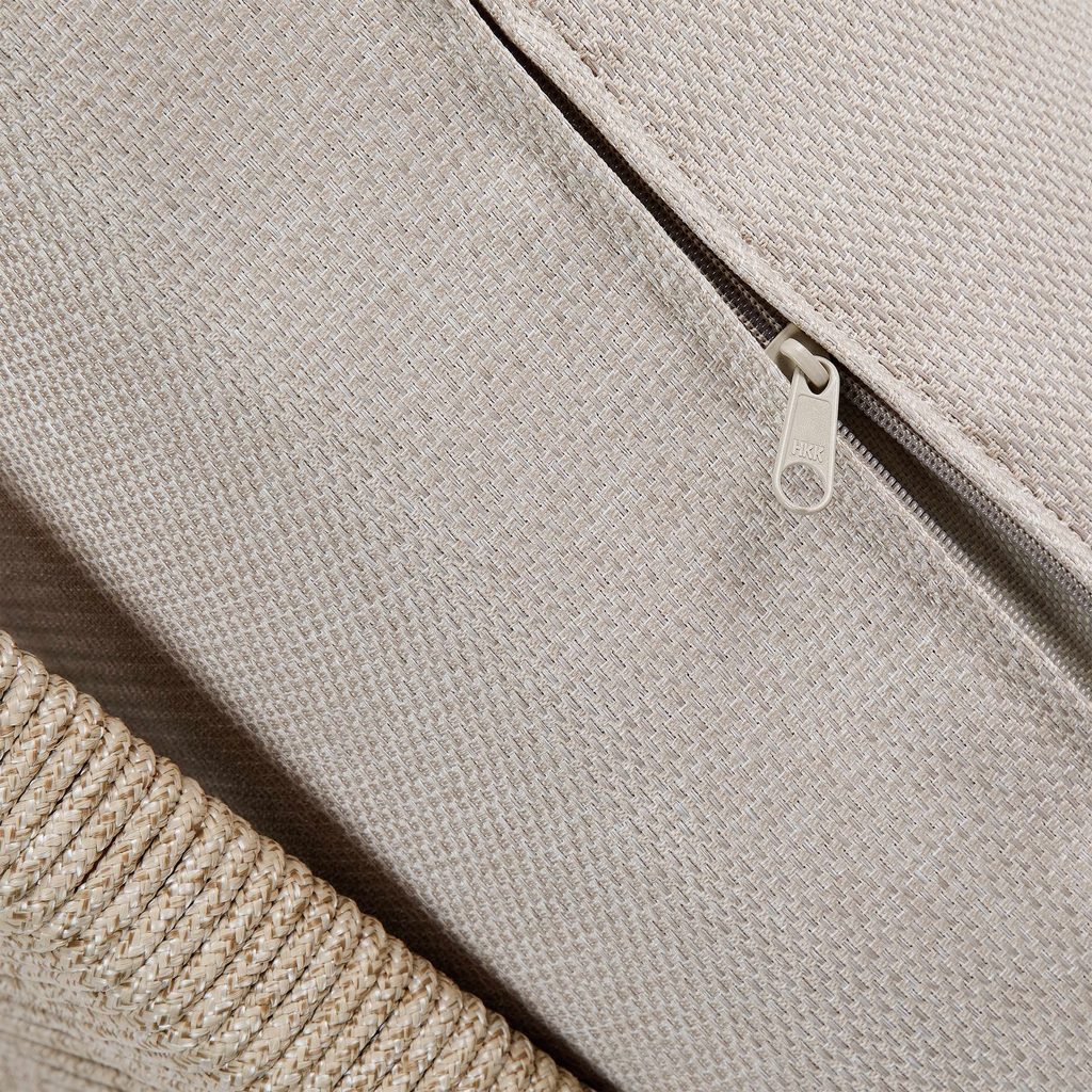Prírodné farby, pravé akáciové drevo a módne povrazové šnúry na podrúčkach a operadlách: vonkajšia sada záhradného nábytku ROPE ISLAND má všetko, čo potrebujete, aby Vaša jarno-letná relaxácia na terase alebo balkóne bola ešte krajšia. Príjemné čalúnenie ponúka vysokú úroveň pohodlia pri sedení a vďaka zipsu ho možno v prípade potreby ľahko sňať a ručne vyprať. Okrúhle stolíky z agátového dreva zvádzajú svojim elegantným tvarom a krásnou povrchovou úpravou dreva. S touto sadou môžete vytvoriť skutočne pohodlné a praktické posedenie pre 2 osoby.