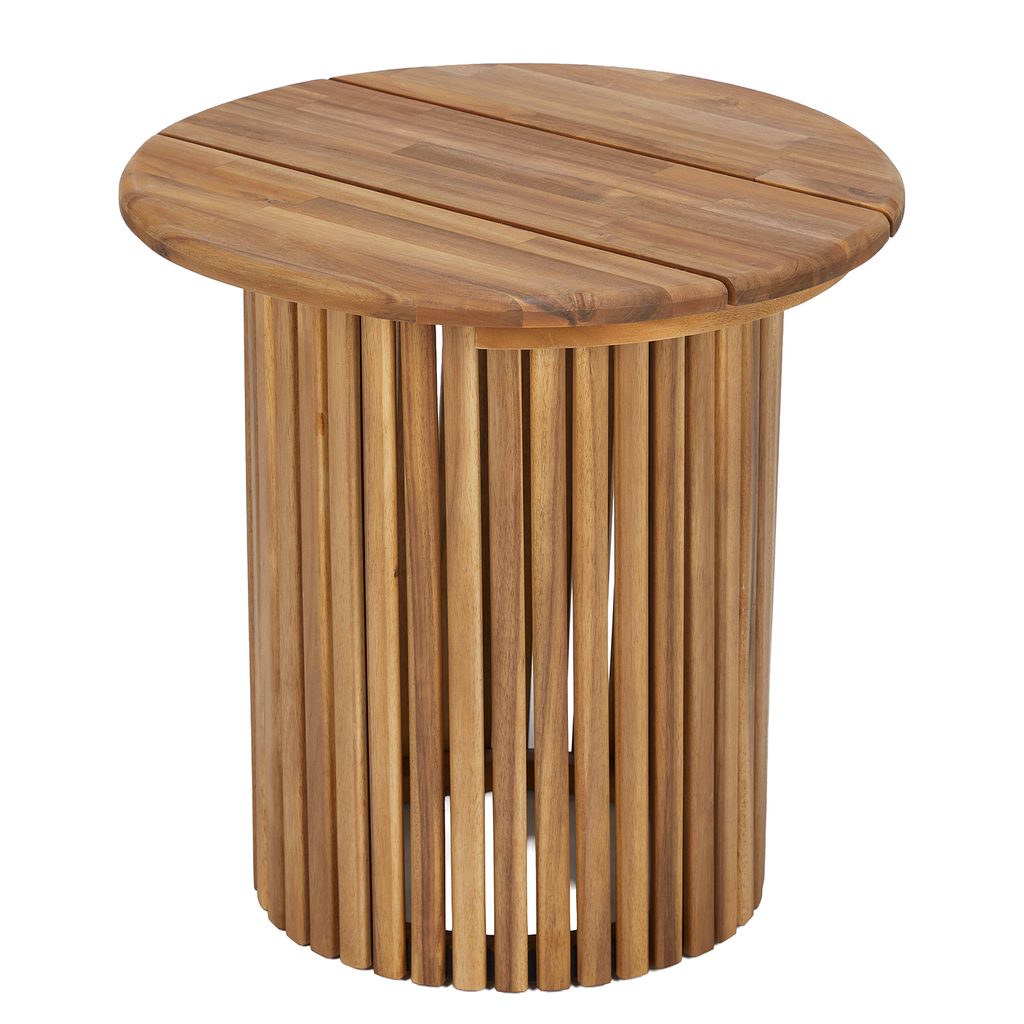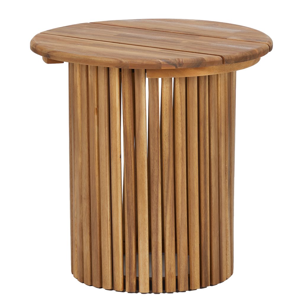 Odkladací stolík BAYONNE skvele doplní Váš pohodový vonkajší životný štýl. Tento okrúhly záhradný stolík vyniká moderným dizajnom a je vyrobený z prírodného akáciového dreva. Predstavuje praktický kus nábytku, ktorý zároveň vytvorí atraktívny dominantný prvok na vašej terase alebo záhrade.