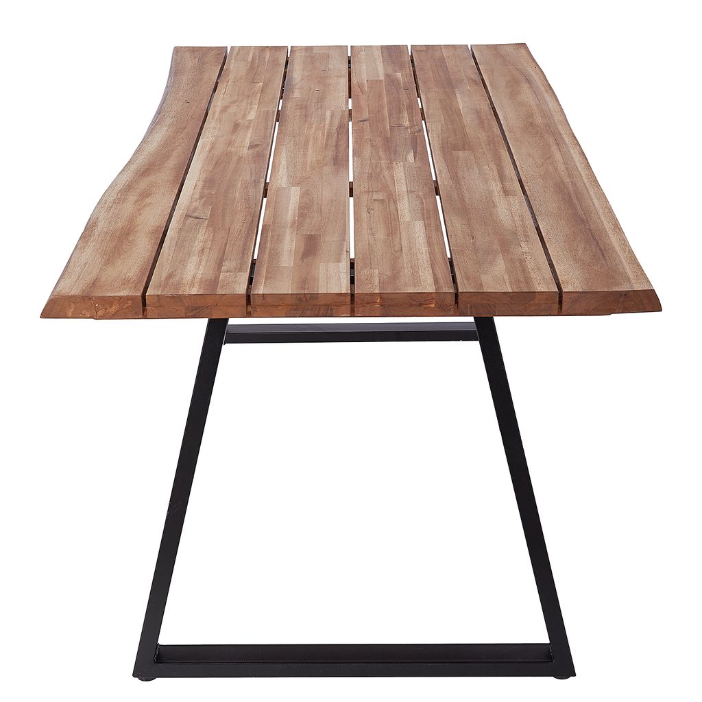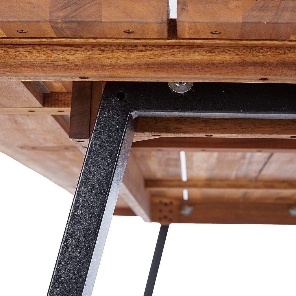 Stôl TORRENCE je ideálnou voľbou pre balkón, terasu alebo záhradu a pohodlne usadí až 6 osôb. Moderný dizajn stola kombinuje grafický železný rám s doskou z akáciového dreva s certifikátom FSC, ktoré je prirodzene odolné voči poveternostným vplyvom a plesniam. Tvar rámu zároveň zaisťuje pevnú stabilitu, čo oceníte najmä pri rodinných stretnutiach alebo záhradných oslavách.