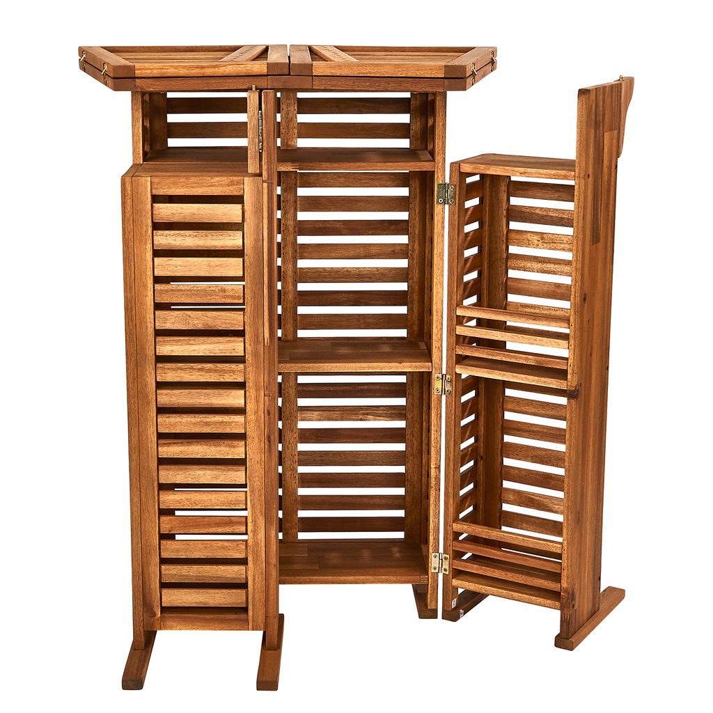 Od teraz budete s barom TURNTABLE z FSC-certifikovaného agátového dreva vždy pripravení na ďalšiu záhradnú party. Jednoducho rozložte bar a hneď máte miesto pre všetky poháre, fľaše alebo shaker, teda sú tiež okamžite po ruke. Využite každý slnečný deň a pozvite priateľov k vám domov a užite si spoločnú spontánnu oslavu. K dostaniu sú aj vhodné záhradné stoličky TURNTABLE.