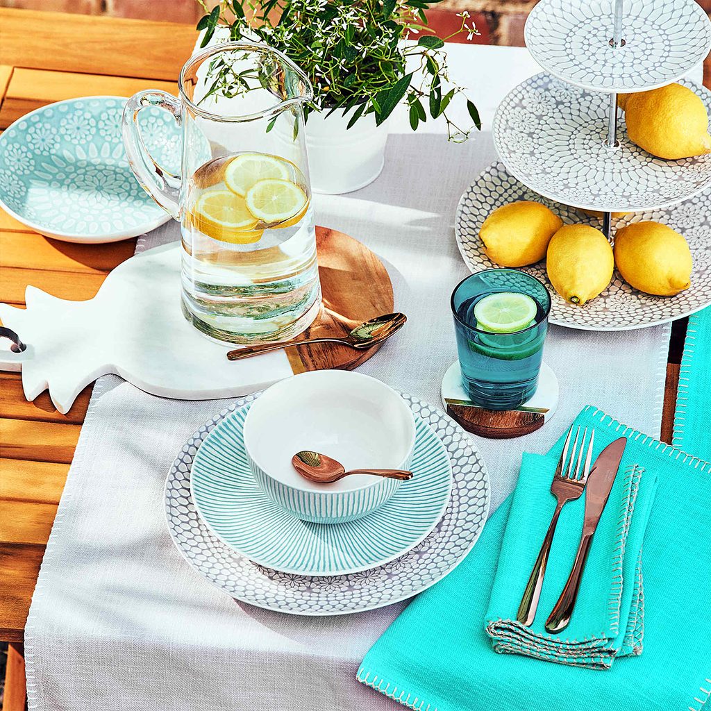 Nezameniteľný šarm Baleárskych ostrovov. Bavlnený tyrkysový obrúsok FINCA so zapošitými okrajmi premení Váš prestretý stôl na balkóne alebo terase na idylické posedenie pri mori a Váš všedný deň sa razom zmení na príjemný deň ako na dovolenke. Kombinujte s ďalšími variantami zo série prestieranie FINCA, k dostaniu aj v ďalších farbách.