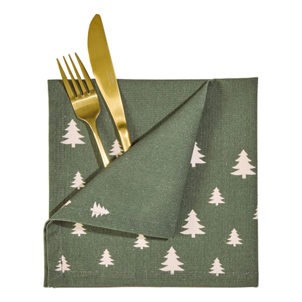 S jemne stylizovanými smrekovcami na tmavozelenom pozadí prináša textília TREES do Vášho domova zimnú a vianočnú atmosféru. Stolná textília je vyrobená z bavlny a je ideálny na každodenné použitie.