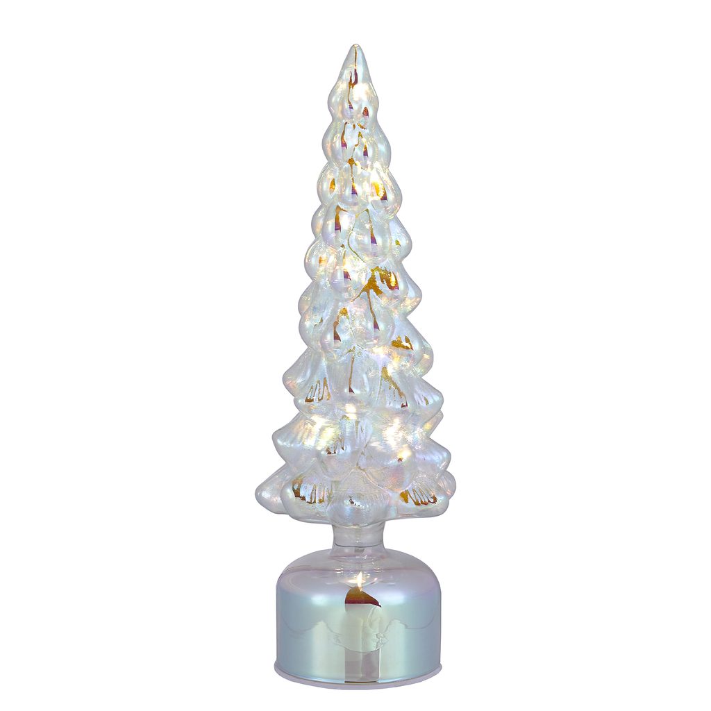 Vianočná LED jedľa, elegantne skombinovaná so sklom, krištáľom a perleťou, vytvára vďaka LED osvetleniu a trblietavým odleskom magickú rotujúcu dekoráciu. Otáčanie okolo vlastnej osi umožňuje svetlu pohrávať sa so sklom a vdychuje tak Vašej stolnej výzdobe jedinečný kúzelný lesk.