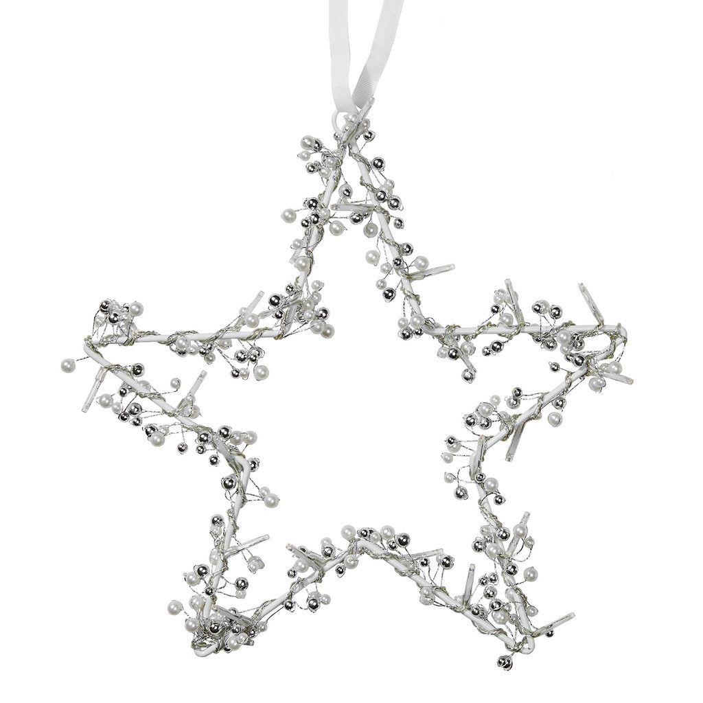Zimné čaro a romantika s LED svietiacou hviezdou STAR LIGHTS so striebornými a bielymi perlami. Tip: V tme ako ozdoba okna obzvlášť efektné.